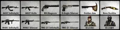 UNIQUE WEAPON : AKS-74, MP5, K-2, P90, ASG-12, SG-850, MG.