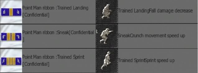 Trained Landing : mengurangkan damage ketika lompat dari tempat tinggi sebanyak 50% . 30 minit Sprinting.